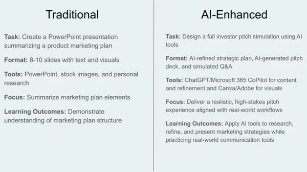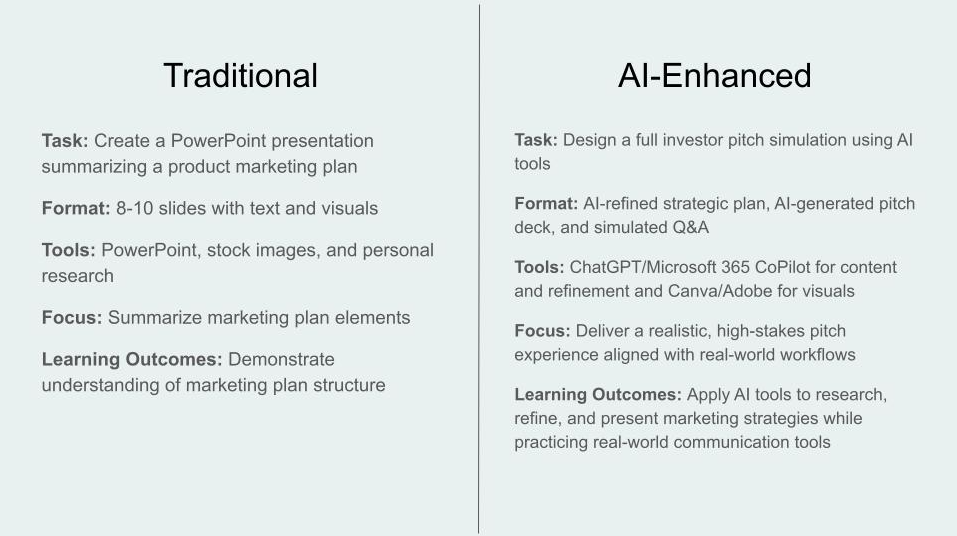 By integrating AI tools, the assignment shifts from a static presentation to an interactive, real-world simulation, enhancing engagement, fostering creativity, and preparing students for the professional environments they will encounter after graduation.